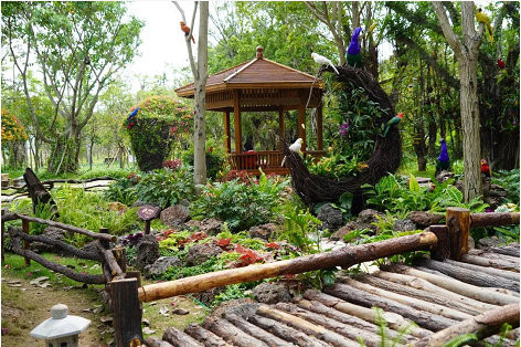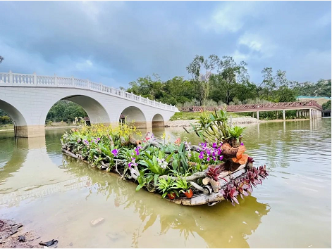 作品描述:該作品以輪胎、油桶、臺風枯枝、廢棄PVC水管、修剪剩下的竹子等破舊廢料為主要材料,通過刷漆加工彩繪,再用時花、植物點綴,營造出特色主題小景,不僅可以美化景觀,還起到了科普垃圾分類,引導市民提高環(huán)保意識的作用。