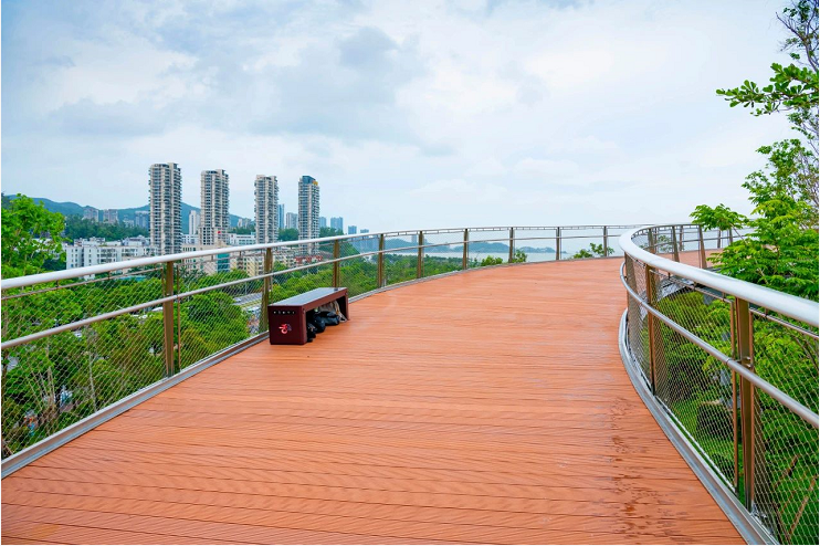 雞公山示范段位于情侶中路海天公園南側(cè),是繼香山湖示范段后,項目建成的又一重要節(jié)點工程。棧道全長1100米,沿雞公山段蜿蜒而上,將整個山體延展開來,形成山海相望,海天成趣的景象。云道與海天公園、珠海市博物館相鄰,還有海天公園停車場,為市民游客提供便利。