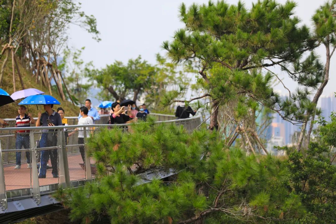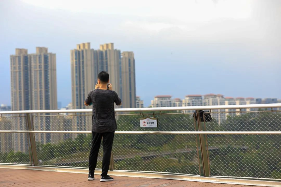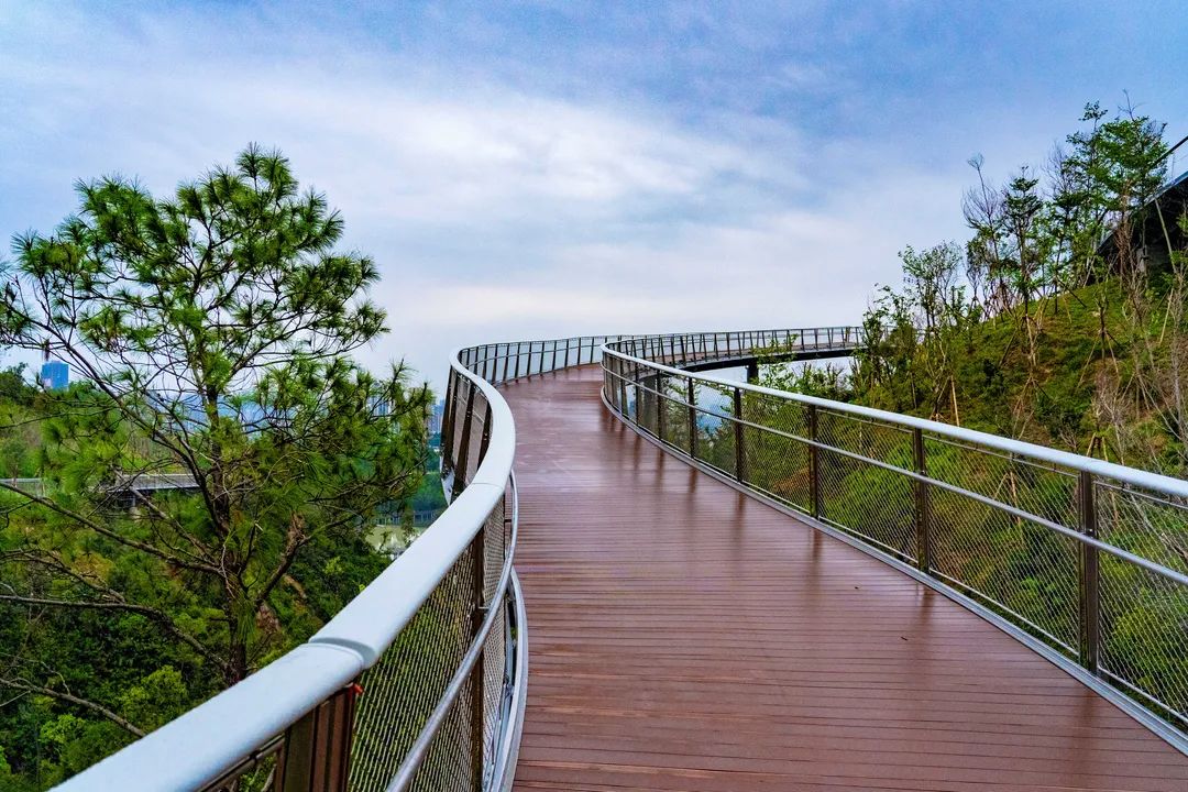 在“以人為本”的設(shè)計理念下,游覽者避免了登山拾階而上對膝蓋的損傷,踏步云道如履平地,防滑木制材料增大了步道與鞋底的摩擦力,無論是中青年,還是老人、小孩,都可以輕松登上山頂,盡享城市與自然的絕美風光。
