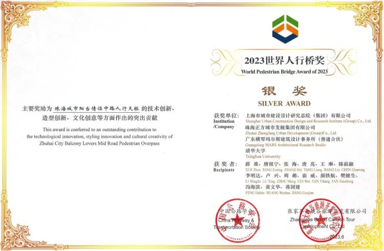 珠海城市陽臺情侶中路人行天橋榮獲2023世界人行橋獎銀獎