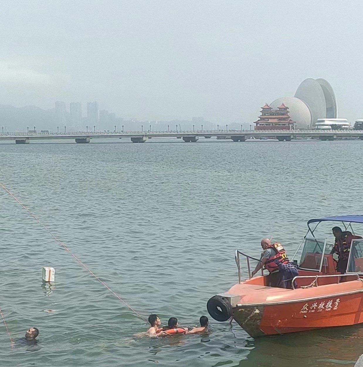 接到支援呼叫,黎啟成跳上自行車飛奔而來。憑借多年的救生員工作經(jīng)驗,黎啟成沉著冷靜分析現(xiàn)場救援情況,果斷跳入海中。三人協(xié)力托起落水女子,一邊安撫情緒,一邊將女子拖往岸堤較低處救助。在水中艱難前行了約200米后,派出所呼叫的救援船趕來,將四人救助上船。隨后經(jīng)醫(yī)務(wù)人員檢查,確認(rèn)該女子身體無大礙。