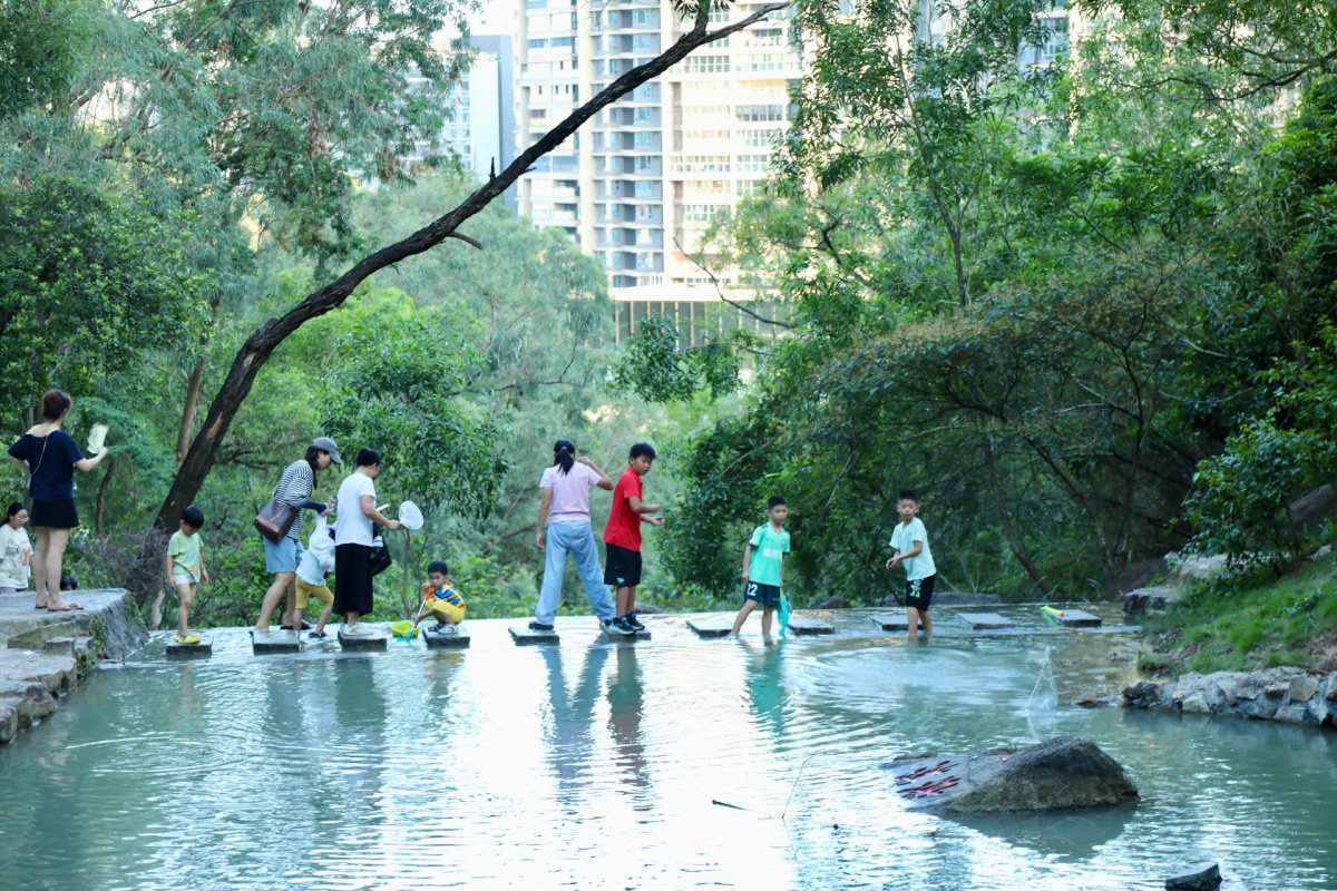 10日正值周日,公園游人熙攘。家長(zhǎng)們紛紛帶著孩子登高望遠(yuǎn),亭臺(tái)歇腳、水邊嬉戲,盡享假日閑適?!案脑旌蟮墓珗@變得更美了。”一名來此游玩的市民笑呵呵地說道。