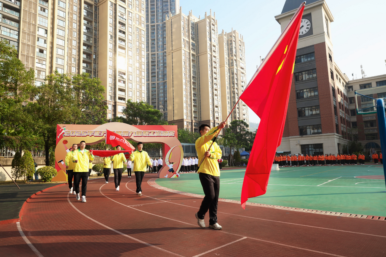 運動會在激昂的旋律中拉開帷幕。護旗手們氣宇軒昂、步伐鏗鏘,莊嚴(yán)護送五星紅旗前行,彰顯正方人昂揚向上的精神風(fēng)貌。