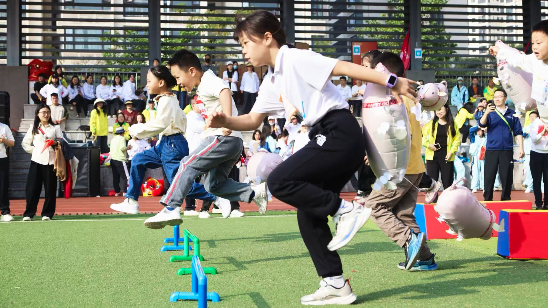 小“豬”零食障礙賽中,孩子們手持卡通氣球,勇闖關(guān)卡,奔向終點零食區(qū)的身影萌趣十足,成為賽場上一道溫馨可愛的風(fēng)景線。