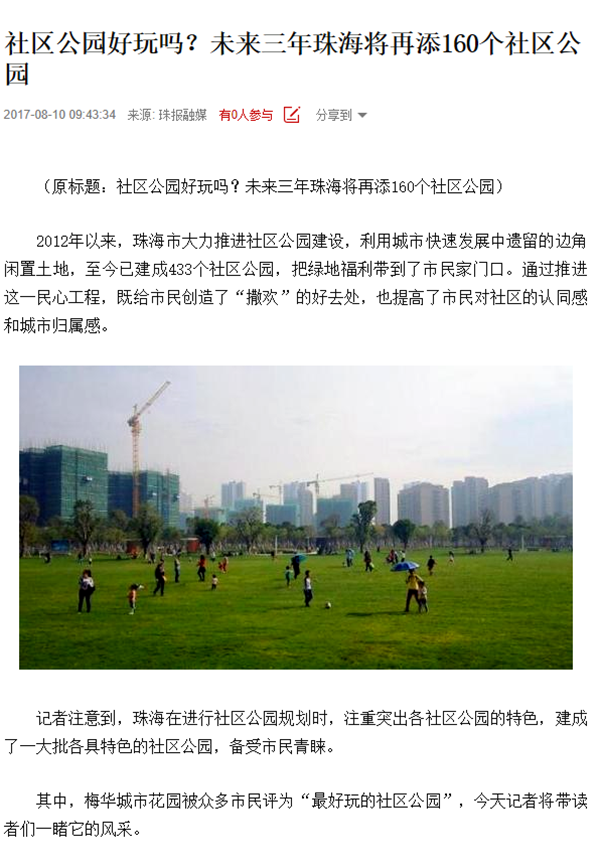 珠海特區(qū)報(bào):社區(qū)公園好玩嗎?未來三年珠海將再添160個(gè)社區(qū)公園 2017-08-10 珠海特區(qū)報(bào):社區(qū)公園好玩嗎?未來三年珠海將再添160個(gè)社區(qū)公園 返回列表 上一篇:珠海特區(qū)報(bào):社區(qū)公園涌現(xiàn)助力“生態(tài)珠?!苯ㄔO(shè) 下一篇:南方都市報(bào):厲害了!珠海這項(xiàng)工程每天引來15萬人參與,溫家寶也點(diǎn)贊