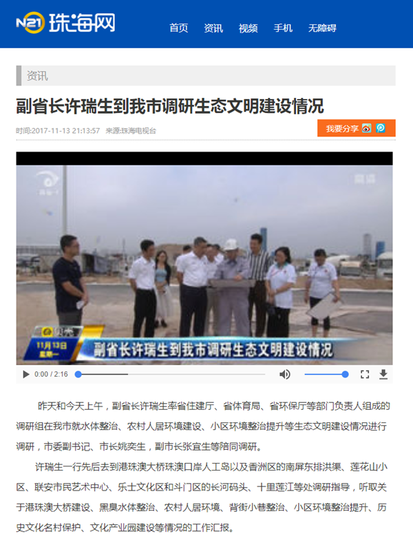 珠海電視臺:副省長許瑞生到我市調(diào)研生態(tài)文明建設(shè)情況 2017-12-13 珠海電視臺:副省長許瑞生到我市調(diào)研生態(tài)文明建設(shè)情況 返回列表 上一篇:羊城晚報:珠海城市客廳“開海” 下一篇:廣東省人民政府網(wǎng):許瑞生赴珠海調(diào)研生態(tài)文明建設(shè) 強調(diào)提供更多優(yōu)質(zhì)的公共生態(tài)產(chǎn)品