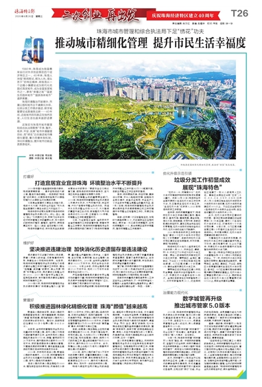 珠海環(huán)境整治不斷提升、市屬公園和城市主干道美化升級(jí)、垃圾分類工作穩(wěn)步推進(jìn)、數(shù)字城管建設(shè)成果推陳出新……40年間,這座城市的風(fēng)貌正在悄然改變,人們生活也越來越舒適便捷。