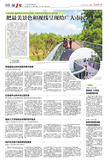 陽光普照,鴛鴦戲水,綠意宜人。站在嶄新的鳳凰山“云棧道”上,湖光山色、高樓林立盡收眼底。11月20日,鳳凰山步道香山湖示范段正式開放,成為珠海向市民開放的第一條山地步道,當(dāng)天即迎來了市民、游客大約1.5萬人次。開放后的首個周末,日客流量更是在4萬人次左右。