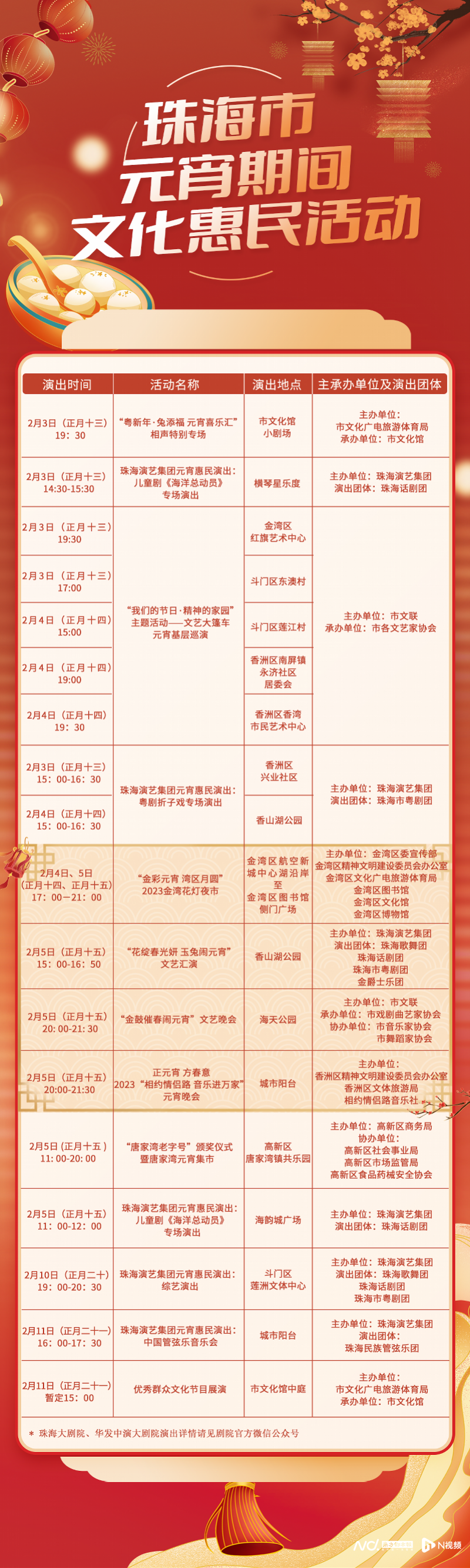 年到元宵燈火燃,文化活動(dòng)好戲連臺(tái)。在元宵節(jié)期間,珠海演藝集團(tuán)還將帶來一系列元宵惠民演出活動(dòng)。