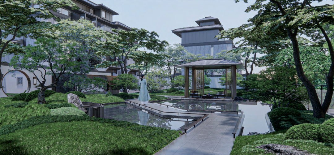 而社區(qū)內(nèi)部,則采用正方首創(chuàng)、珠海唯一的新嶺南風(fēng)格園林,參考吸取嶺南四大名園精華,打造“兩軸三庭,五進(jìn)六園”景觀布局。