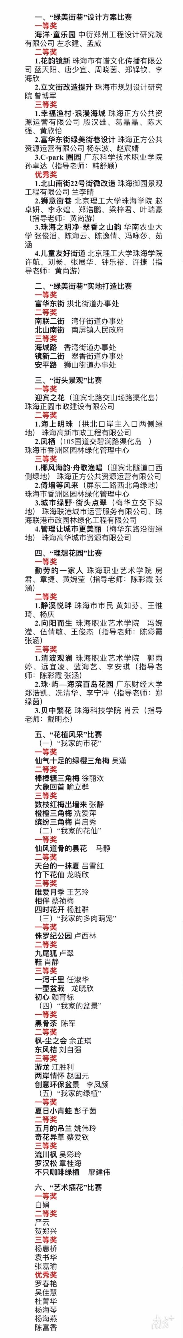 附:珠海市香洲區(qū)首屆園藝景觀大賽獲獎(jiǎng)名單