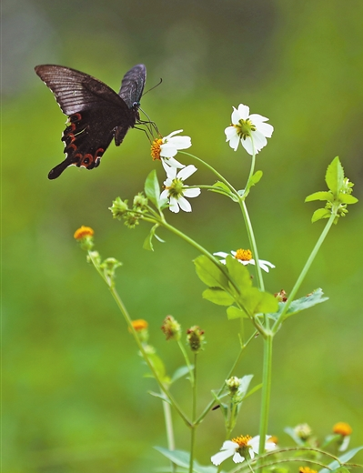 恰好是南國溫暖濕潤的風,輕輕拂過香山湖畔,蘊藏著熱烈奔放的氣息。瞧,那是只藍點紫斑蝶,它舞姿輕盈,自在翩躚,黑褐色的翅膀上泛著點點異彩。只有屏息駐足時,才能瞥見瑰麗優(yōu)雅的紫藍色光澤。