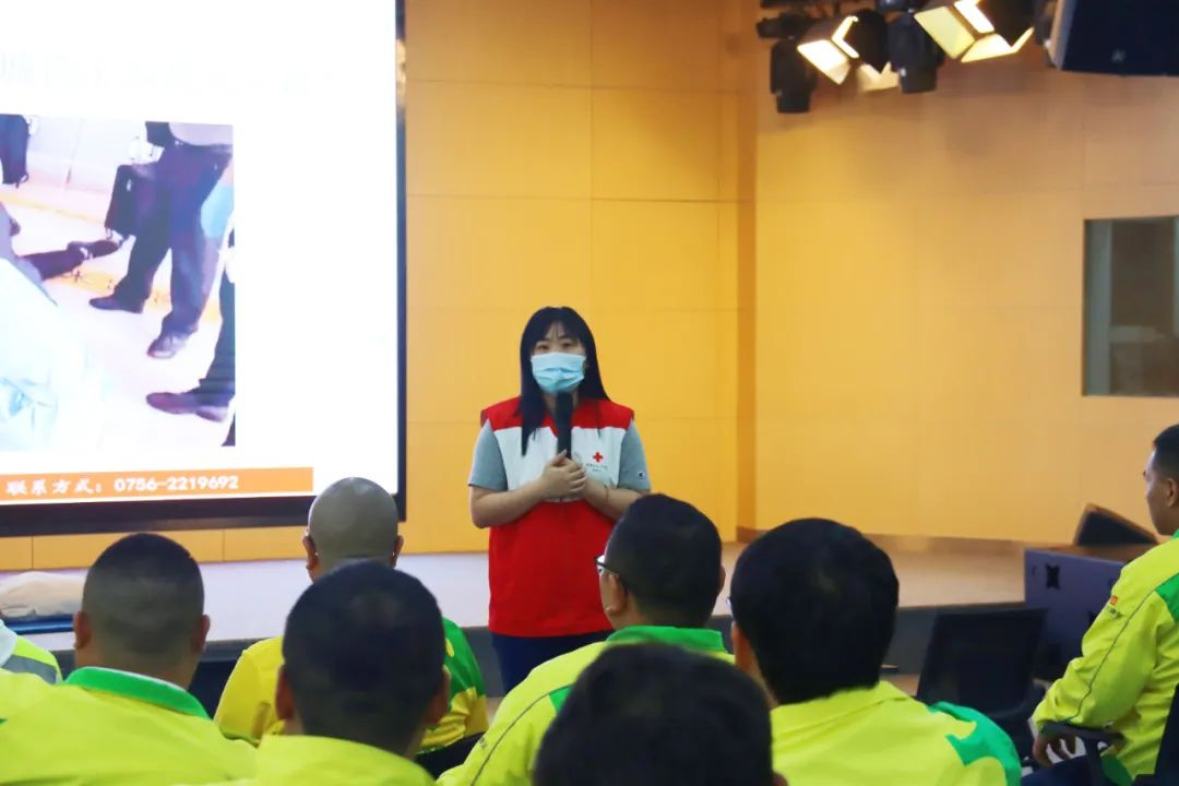在紅十字會講師的詳細講授下,參訓人員學習了救護的目的、原則以及日常生活中遇到氣道異物阻梗、心臟驟停、創(chuàng)傷等緊急情況下的應急救護技能等基礎(chǔ)理論知識。