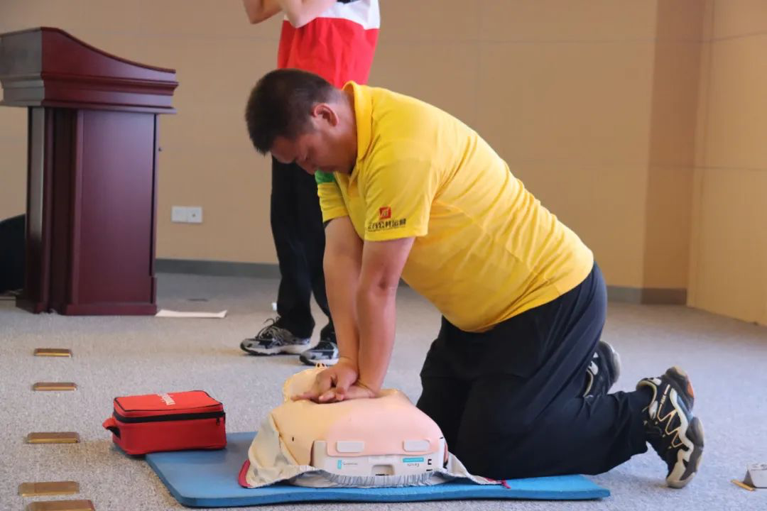 講師們還通過現(xiàn)場實操,講授了突遇心臟驟停情況下進行心肺復蘇及使用AED的方法。參訓人員積極參與互動和模擬練習,進一步加深了對急救知識的理解和運用,實現(xiàn)了理論學習和實踐應用的有效結(jié)合。
