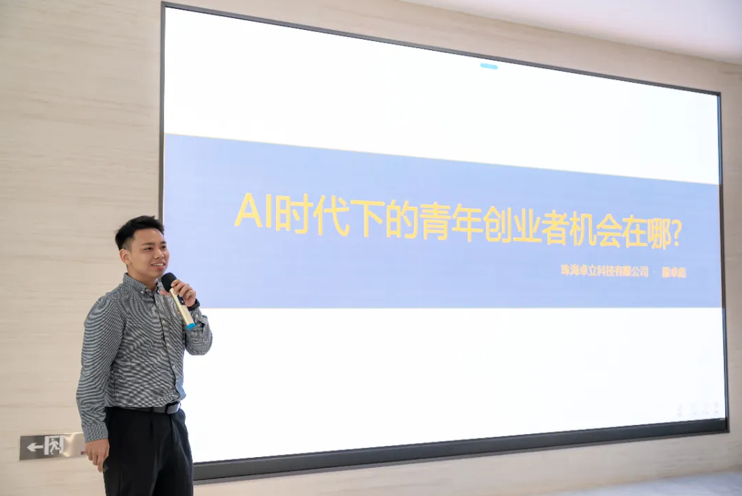 結(jié)束參觀后,青年們來(lái)到17棟2樓路演廳集中開(kāi)展活動(dòng),活動(dòng)首先由香洲區(qū)國(guó)資團(tuán)工委書記張曌、正方集團(tuán)團(tuán)委書記陳熙致辭。隨后,由卓立科技公司總經(jīng)理殷卓彪先生與青年們進(jìn)行分析,殷總以其創(chuàng)業(yè)經(jīng)驗(yàn)和在科技領(lǐng)域取得的成就,就“如何在創(chuàng)業(yè)道路上堅(jiān)持自我、實(shí)現(xiàn)突破”和青年們進(jìn)行了交流探討。